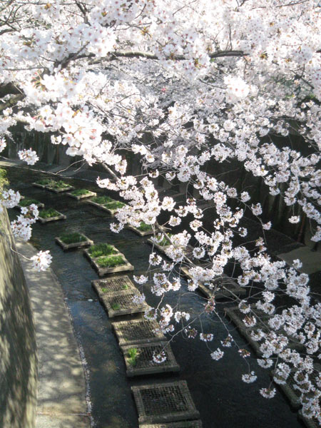 はらはらと川に花弁が落ち、ゆるやかな流れに乗って