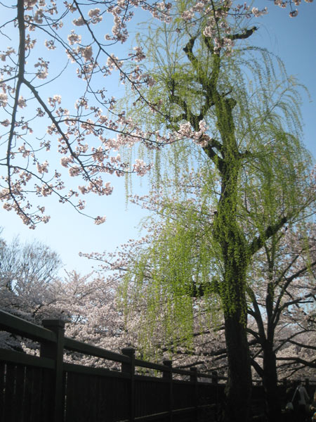 桜の薄桃に、若々しい柳の緑がとても映えます。