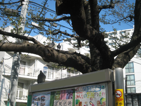 樹の上の鳩さん、左側の殿方が右側のお嬢さんに