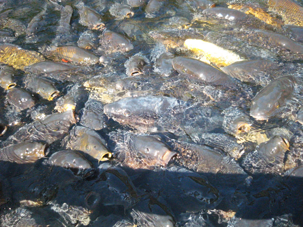 金魚みたいな小さいのも居れば、そこいらの猫くらいのでかい鯉も居て
